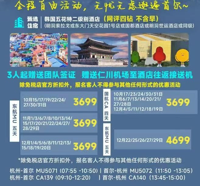 1、随身必备携带品:请自备牙膏、牙刷、毛巾、洗发精等个人洗漱用品(酒店备有,但要收取费用)。 2、健康与药物: 出外旅游,个别游客可能会因水土不服而令身体感到不适,所以客人应自备晕车药及常用的药品,以备不时之需。若您长期服用某类药品,必须带足药物,以防万一。 3、海关:每位旅客出入海关时,请听从领队安排,以免给团队造成不便。膏状物体、液态物体及金属物品须全部托运,水果等违禁物品不能随身携带及托运。中国海关规定:每人可携带人民币2万元或等值外币出境。入境时,每位客人可携带烈酒1瓶,烟400支,严禁携带违禁物品。韩国海关检查严谨,请游客配合检查,凡入韩国境内被登记的物品,在离境时须呈报给海关查阅。游客可免税携带200支香烟、1瓶洋酒入境。韩国海关规定:购买染发剂的游客,回国托运时每人只限量一瓶,超过数量拒绝托运,即被没收。 4、退税:如在韩国购买到可以退税商品时,回国时需向韩国海关出示所购的商品(千万不要打包托运到行李中)、收据、护照,以便海关盖验收章后在机场就近的退税点办理退税。如因客人自身原因没能退税,由客人自行承担所造成的损失。 5、天气:韩国气候,海洋性特征显著四季分明,夏季炎热潮湿,秋季凉爽,冬季寒冷干燥。首都首尔和北京气温相差不大。 6、货币:韩国流通货币为韩元。韩国境内可广泛使用一般信用卡:VISA、EXPRESS、MASTER等。银联卡在很多地方都可使用。如需在国内兑换韩元,在有储备的情况下,我社可提供服务,汇率按照韩国机场银行汇率换取(汇率参考值约:1人民币=160韩元左右,以当天汇率为准)。 7、行李:出外旅游应尽量少携带贵重物品,手提行李每人限携带一件,托运行李重量不超过20公斤。 8、文明礼节: 团队观光游览景点的过程中请注意保持当地的清洁卫生,不乱扔垃圾,不随地吐痰;不要大声喧哗。 禁止边走路边吸烟,必须在有烟灰缸的地方才能吸烟;禁止厕所吸烟以及把烟头扔入马桶。 9、语言:韩语为行政用语,大型商场可用英语交流。 10、住宿:个人财物应妥善保管,贵重物品可放于酒店前台的保险箱。离开饭店外出逛街,请携带饭店名片以备迷路时使用。 11、饮水: 韩国自来水可以直接饮用。 12、时差:韩国时间比北京时间早1小时,请注意调整时差。如北京时间上午9点为韩国时间上午10点。 13、电压:酒店一般采用220伏特电源;韩国使用两脚圆插头,中国电源插头在韩国无法使用,可在酒店前台交一定押金,租借电源转换插头,离店时退回电源转换插头并退回押金。 14、电话:韩国公用电话有蓝色、银灰色、磁卡电话三种,蓝色和银灰色电话为投币式、为韩国境内使用,磁卡电话可打国内国际长途。如要租赁手机,需提前申请,我社在有储备的条件下可提供租赁手机服务,租机手续在中国办理,更快捷更方便。 15、饮食:团队用餐分中华料理和韩国料理。韩国料理主食一般为白米饭、配以韩国独有的泡菜(辣白菜),以及各种韩式调味料所调配的各种蔬菜。味道偏酸、辛辣,请游客做好心理准备,但此经历也是对韩国习俗的一个了解和体验。 16、特产:高丽参(具有防癌、防衰老、抗癌、保肝之功效),紫水晶(韩国特产,属于世界十大宝石之一)。 17、安全:境外游览时请注意人身安全和财产安全。整体治安相对较好,但某些国家也存在治安隐患,尤其景区、酒店大堂、百货公司、餐厅等游客聚集地更是偷窃行为多发地,请游客务必随同导游带领并注意结伴而行,在游玩过程中,时刻注意自己随身携带的物品安全。 乘坐交通工具时现金、证件或贵重物品请务必随身携带,不应放进托运行李内;外出离开酒店及旅游车时,也请务必将现金、证件或贵重物品随身携带。因酒店不负责客人在客房中贵重物品安全,司机也不负责巴士上贵重物品的安全,保险公司对现金不投保的。 |